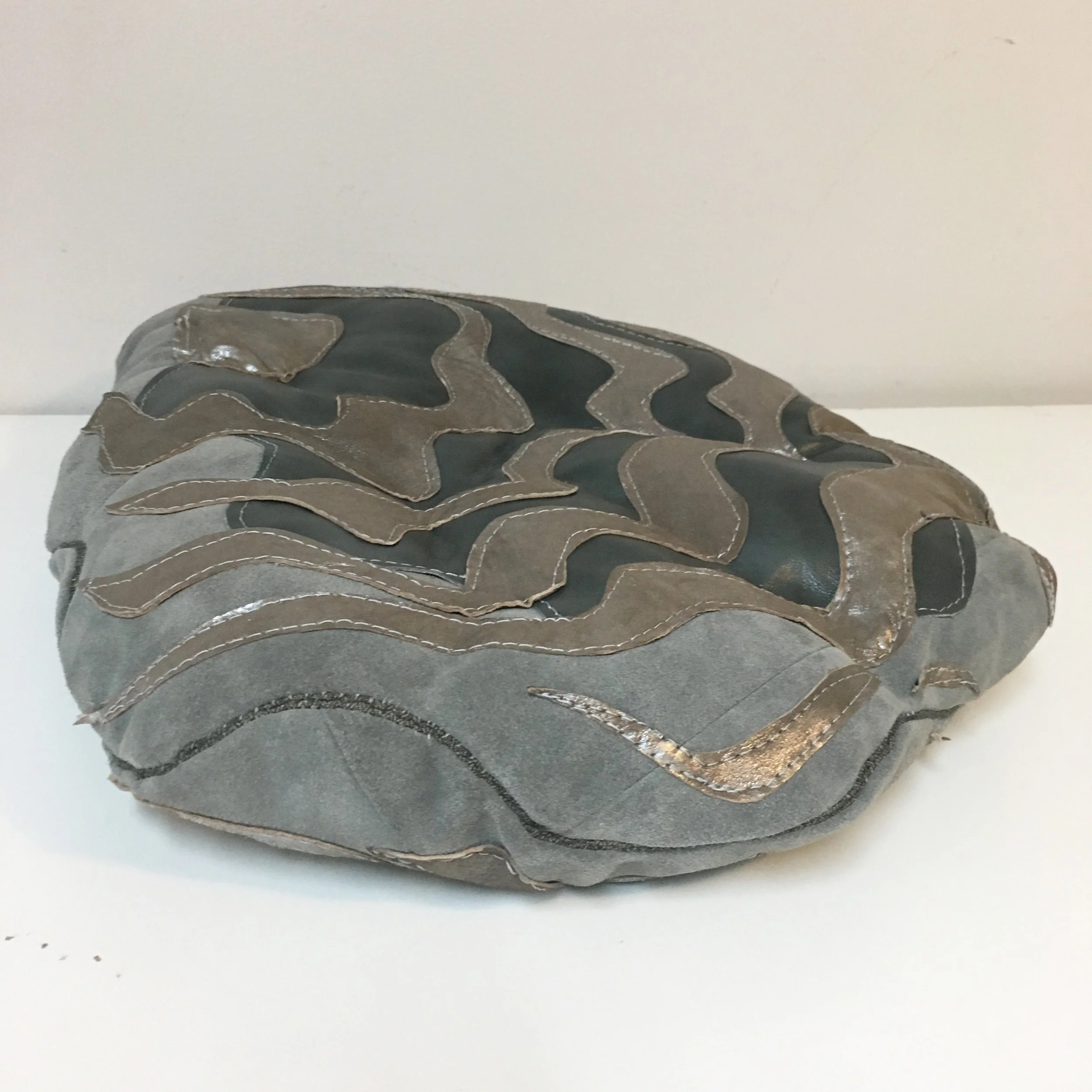 Cushion artist Haleh Pedram uses waste from her upholstery business to create oversized depictions of food worthy of lounging upon. These are her first packaged food sculptures, modeled after classic junk food and trash. Haleh lives and works in Richmond, VA.